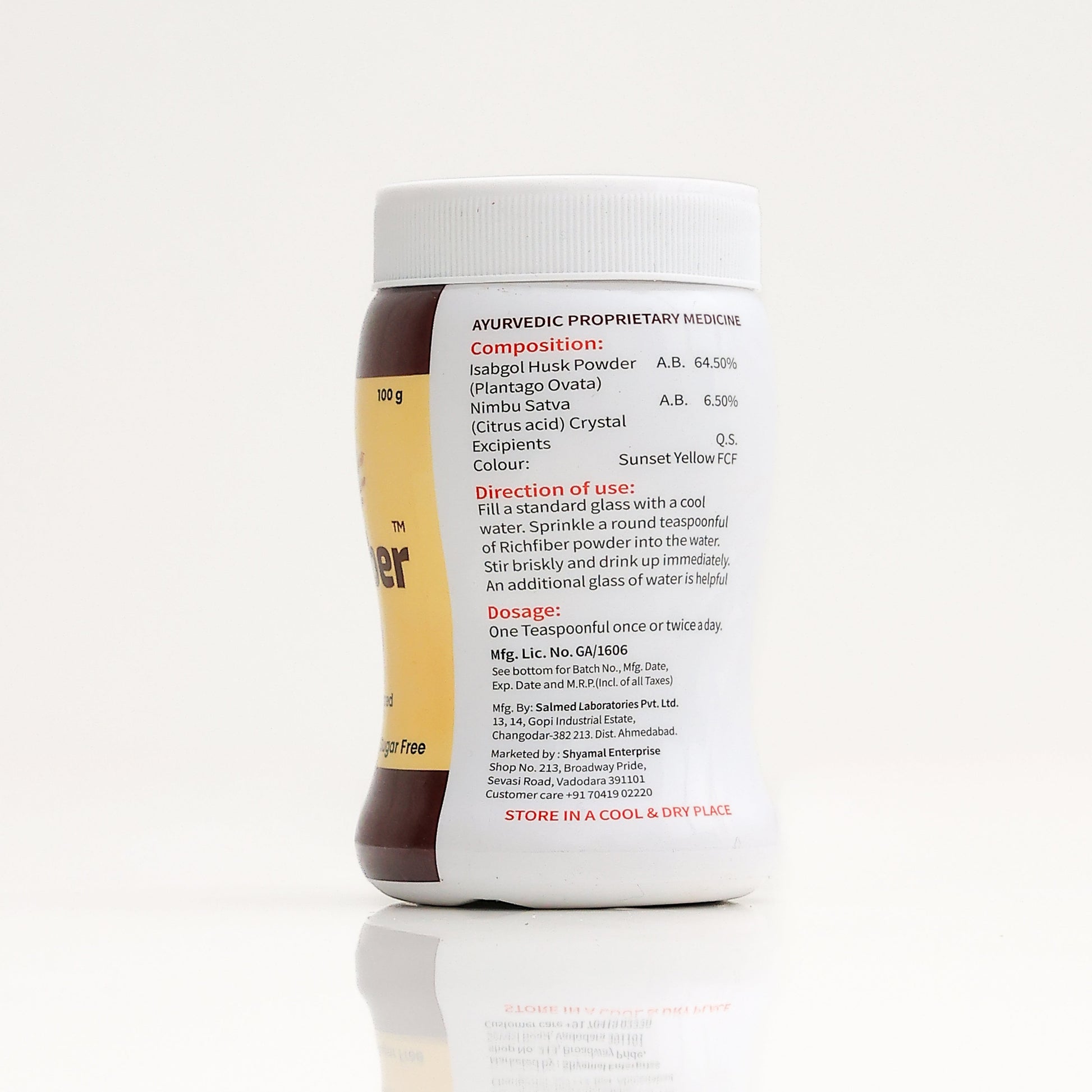 RichFiber Isabgol is a natural dietary fiber made from psyllium husk. It absorbs water in the gut, adds bulk to stool, and supports smooth bowel movement — helping maintain regular digestion as part of a balanced daily routine.
