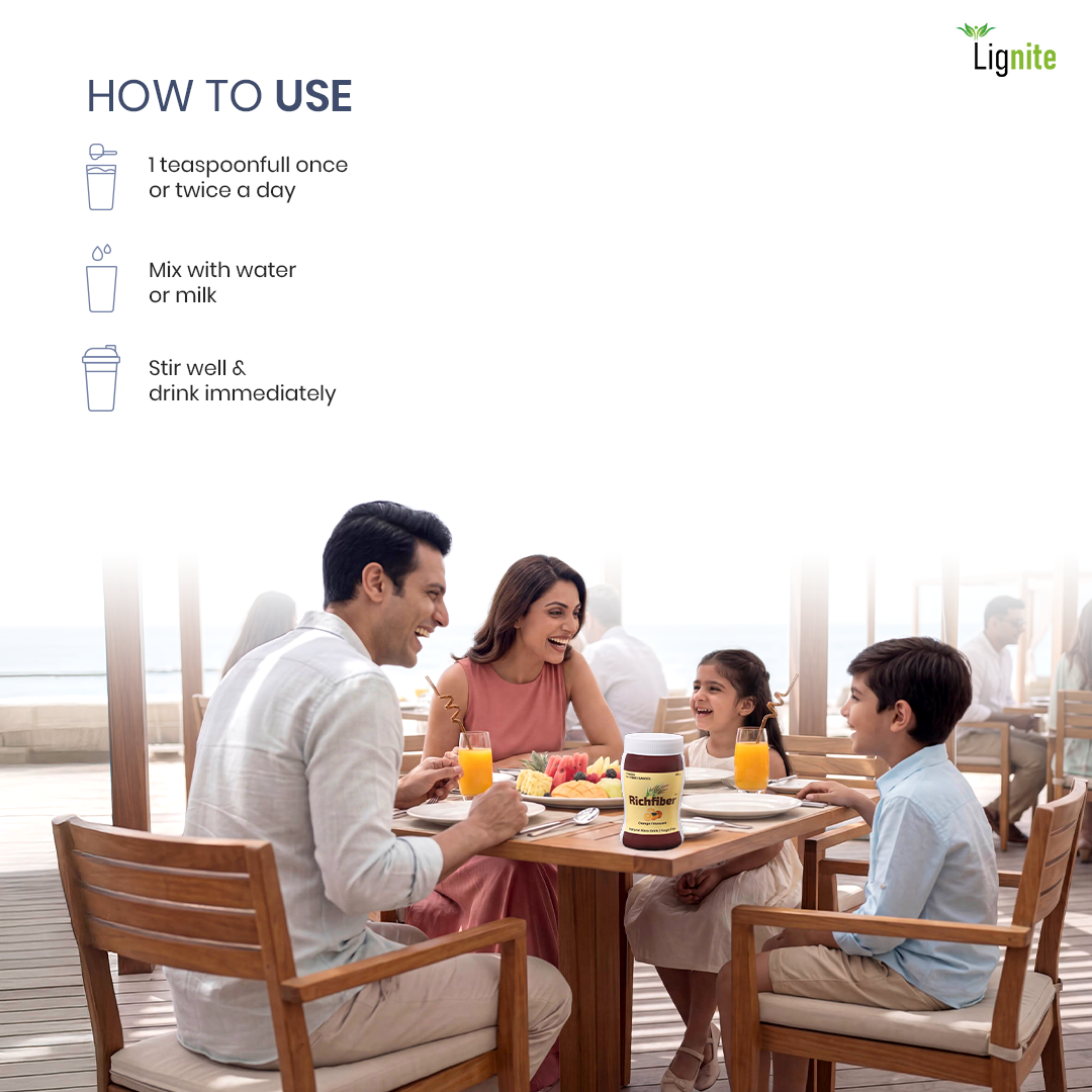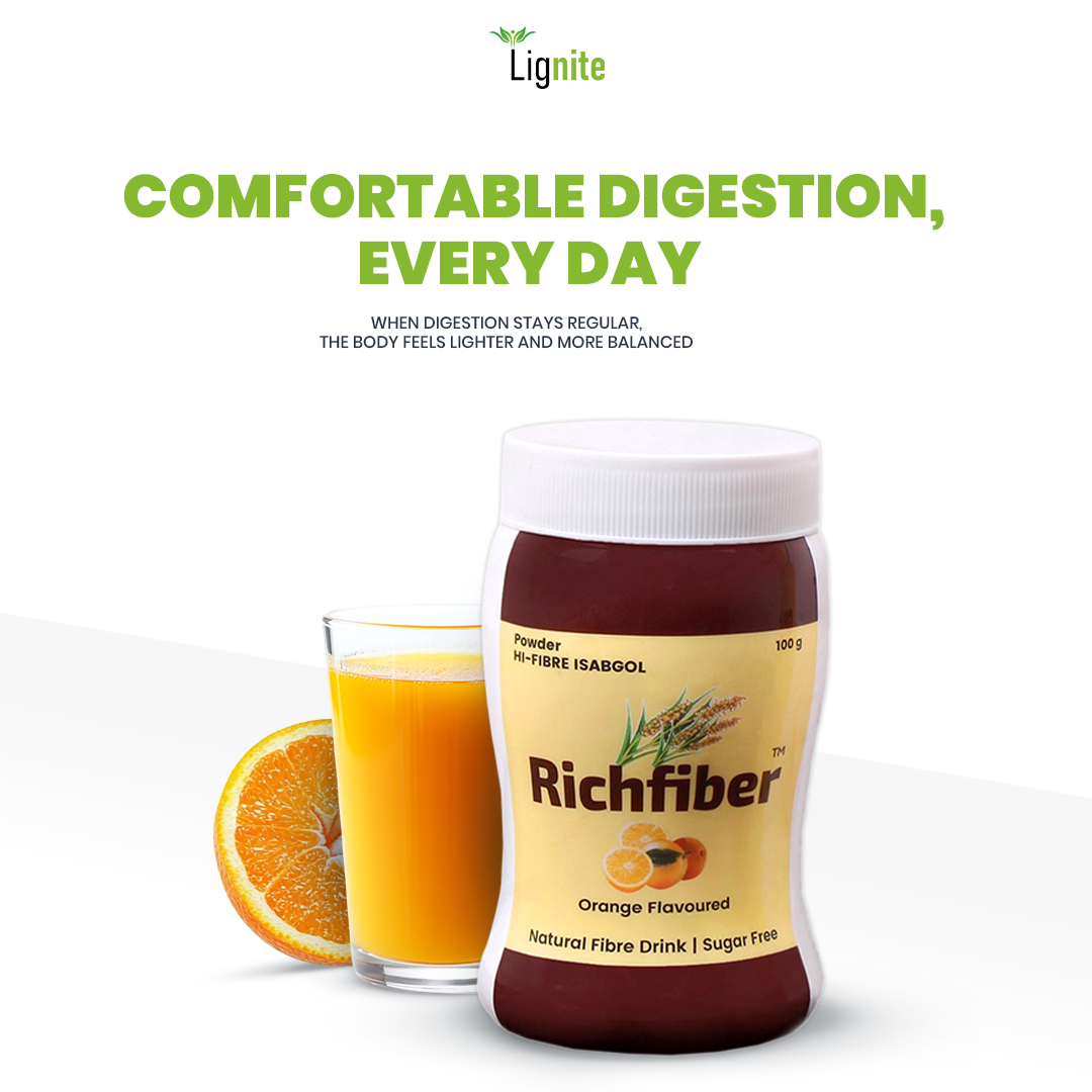 Lignite Richfiber Isabgol is a high-fibre, sugar-free isabgol powder designed to support smooth digestion and regular bowel movement.